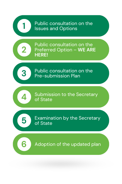 The Preferred Option Consultation Document sets out a proposed development strategy for the borough for the period 2024-2045. This identifies what development and land use should go where. It also includes draft development management policies to be used for determining planning applications, including policies to tackle issues we identified in the ‘Issues and Options’ consultation in October 2023.